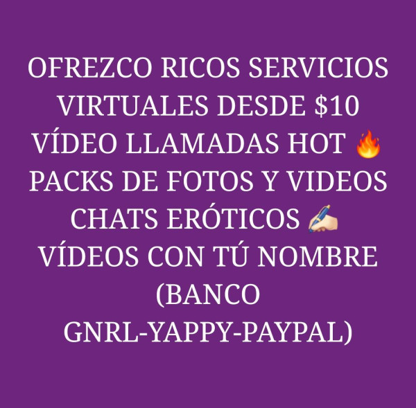 TAMBIEN SOY WEB CAM Y OFREZCO RICOS SERVICIOS VIRTUALES TALES COMO (VIDEOLLAMADAS CALIENTES, CHAT EROTICO , PACKS DE FOTOS Y VIDEOS, VIDEOS PERSONALIZADOS CON TU NOMBRE, SEXTING) Y MAS DESDE $10 $10 $10 ACEPTO DIFERENTES MEDIOS DE PAGO